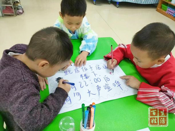 ——民爱社工携手艾文特幼儿园绘制温馨提示标语 筑牢商居关系更加融洽